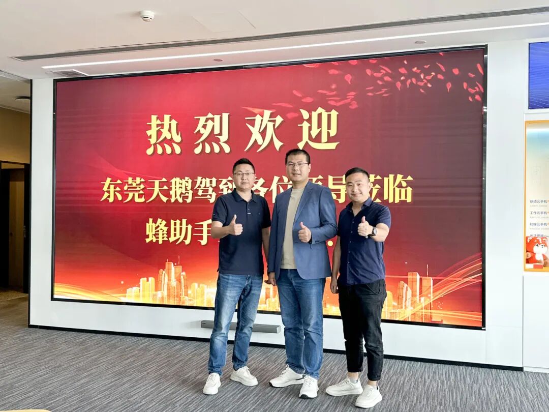 5日下午,天鹅驾到董事长董荣晓一行莅临蜂助手广州总部,参观了蜂助手总部的数字化展厅与运营中心。双方就虚拟商品如何与天鹅驾到的平台场景深度融合进行了卓有成效的洽谈,共同探索为用户提供“代驾服务+”的一站式便捷体验。